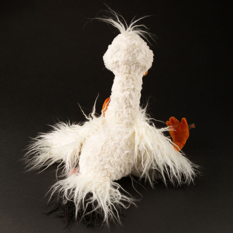 Cette cigogne en peluche rentre d'un long voyage et aspire à un peu de repos dans son nid douillet...