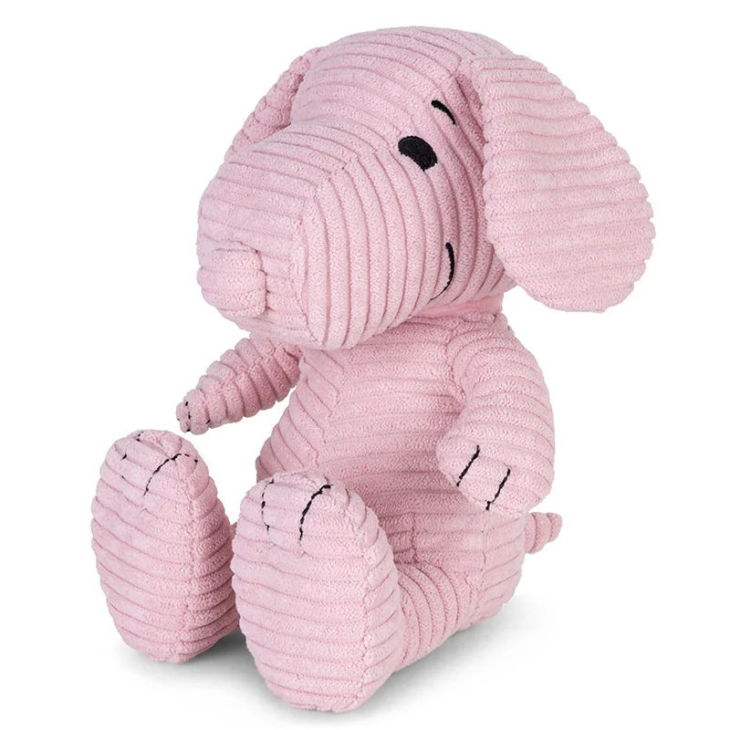 Réf peluche: Peluche Snoopy assis en velours côtelé rose pastel - 19 cm - Bon Ton Toys