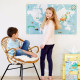 L'enfant déplie le poster et complète les zones blanches avec les stickers, en suivant les numéros indiqués. Petit à petit, les continents apparaissent. Cette activité facile et relaxante ressemble à un puzzle, à une mosaïque ou à un coloriage géant en stickers.