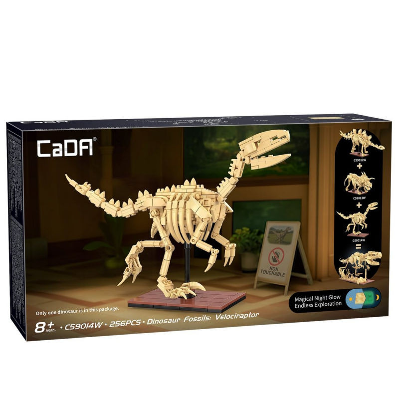 Pour tous les passionnés de dinosaures, ce kit de construction de briques CaDA vous permettra d'assembler un squelette de Vélocirator et son support de présentation.