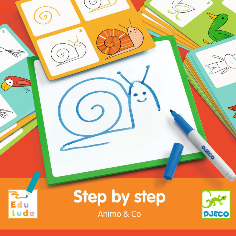 Apprendre à dessiner les animaux en réalisant des dessins étape par étape et en suivant les modèles des cartes.