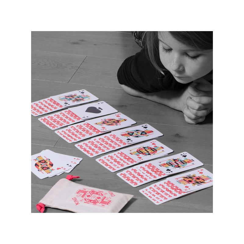 King est un jeu de 52 cartes classique (+ 2 jokers) où les Rois, Reines et leurs Valets ont changé de personnalité tout en gardant leur majesté...