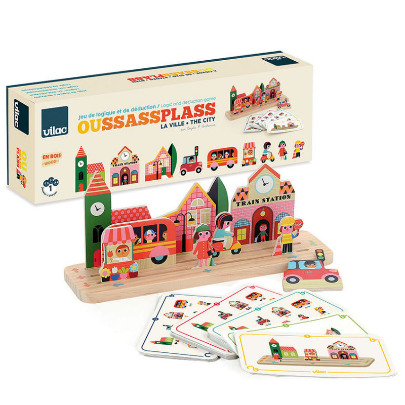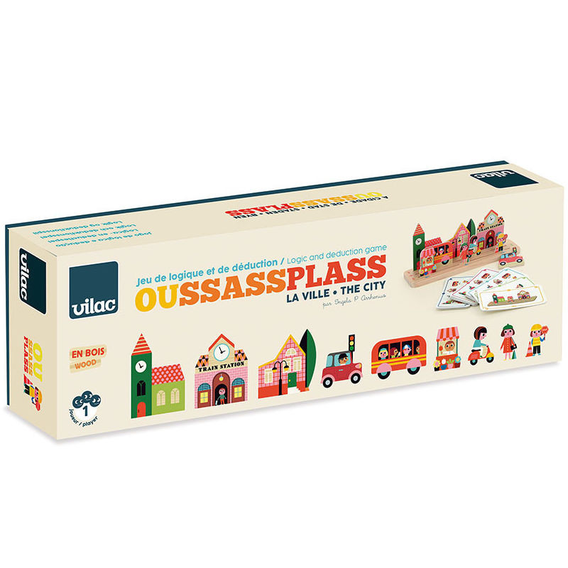 Réf Jouet: OUSSASSPLASS "La Ville" jeu de logique et de déduction en bois VILAC 7627 - Ingela P. Arrhenius