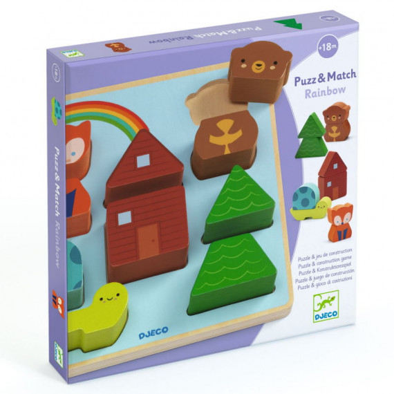 Puzz & Match est un puzzle en bois facile à assembler et un jeu de construction. Les 2 pièces de chaque ensemble s'empilent pour former de jolis animaux et décors. Les enfants peuvent aussi s'amuser à échanger les pièces pour créer des animaux selon leur imagination...