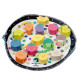 Contenu: 14 perles en bois (fruits et légumes), 1 trousse de rangement en forme de pastèque, 1 cordon composé de 5 cordelettes avec clips de sécurité