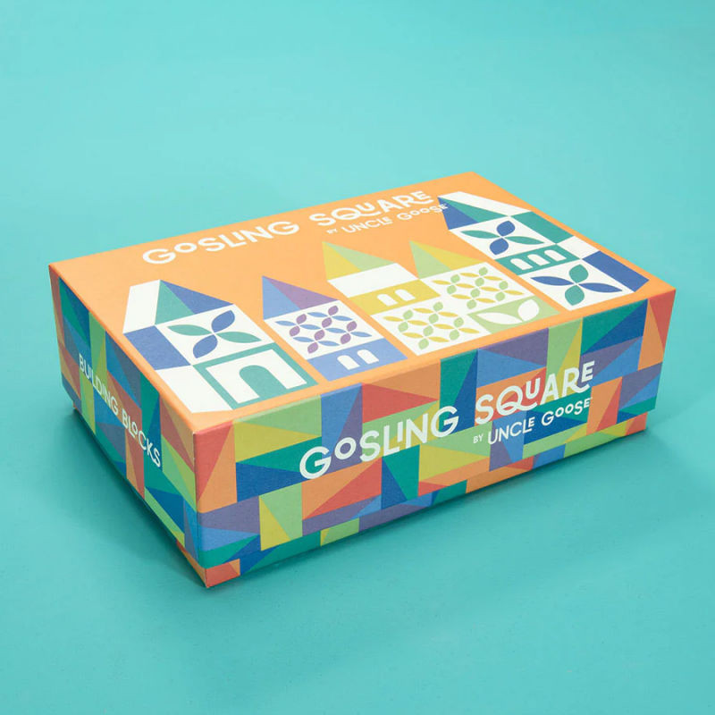 Réf Jouet: Cubes de construction en bois Uncle Goose - 80 pièces - Village Gosling Square