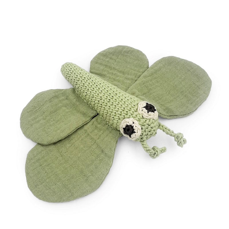 Réf. jouet: Doudou hochet "Papillon vert" en coton bio - MyuM The Veggy Toys