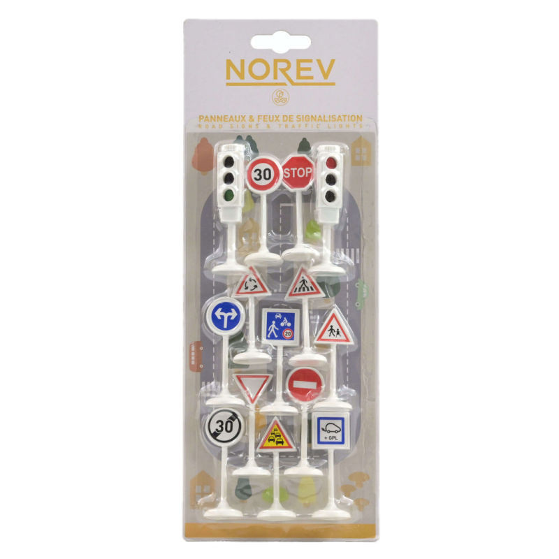 14 panneaux et feux de circulation pour compléter un circuit et jouer avec ses voitures miniatures NOREV.