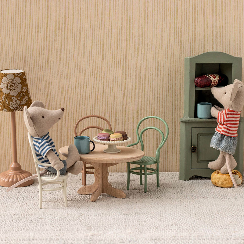 Une jolie table au style rétro pour jouer avec ses souris Maileg. Vous pourrez réunir les amis et la famille souris pour un repas convivial autour de cette table de salle à manger fabriquée dans un bois massif de qualité...