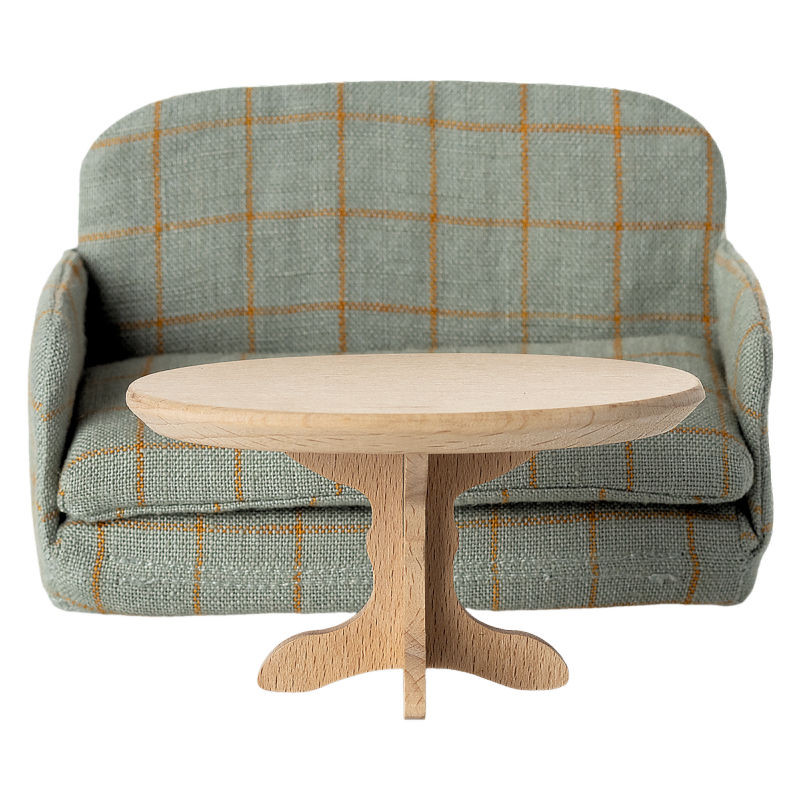 Une jolie table basse en bois au style rétro pour jouer avec ses souris Maileg. Elle trouvera sa place dans le salon de la maison de poupée, près d'un canapé et constituera l'endroit idéal pour prendre le thé ou le café...