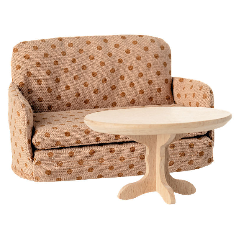 Un divan pratique et confortable pour compléter une maison de poupée. Il peut être utilisé comme sofa et se transforme facilement en lit lorsqu'il est déplié. Un accessoire parfait pour que les petits amis Maileg puissent se reposer...