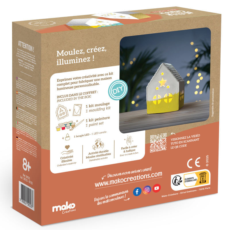 Un kit de loisir créatif DIY complet pour fabriquer soi-même 1 jolie maison lumineuse ! A mouler et à peindre...