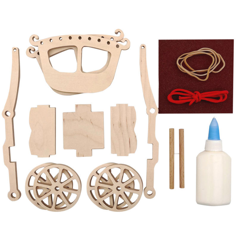 La calèche de Plywood, élégante et royale, constitue un bricolage amusant et facile. Elle plongera votre enfant à l’époque des voyages au rythme du pas des chevaux. Grâce à son harnais en cordelette, l'enfant pourra y atteler un cheval playmobil ou tout autre animal de son imagination et transporter ses figurines préférées pour de magnifiques balades. La promesse de nombreuses heures de jeu enchanteur et d'histoires à inventer...