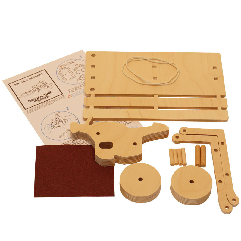 Livré en kit à assembler, c'est un réel plaisir pour un enfant de fabriquer un jouet fonctionnel. L'enfant développera la motricité fine, apprendra la patience et le respect des choses bien faites grâce à une activité ludique. C’est une occasion idéale pour l'initier au travail du bois, poncer et faire un assemblage avec une cheville.