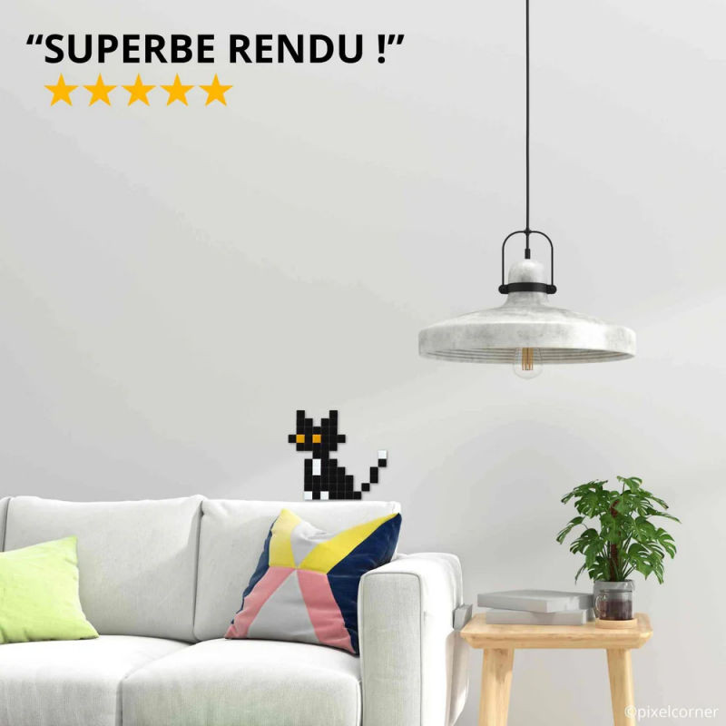 Unique et originale, la mosaïque Pixel Corner est le cadeau idéal à offrir en toute occasion, aux petits comme aux grands, amateurs de félins, d'art numérique et de déco.