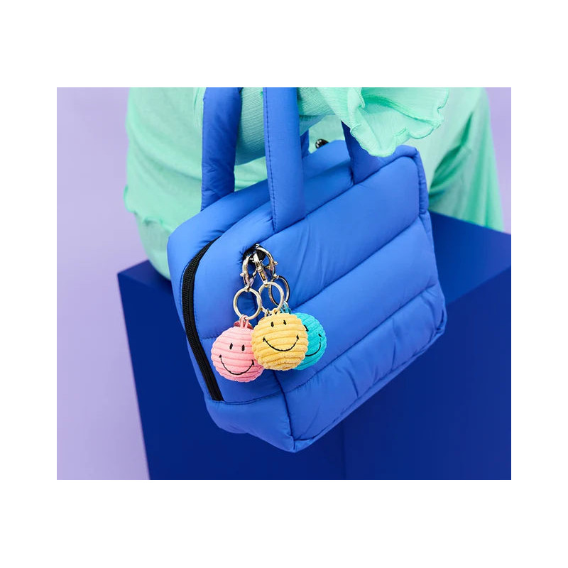 Ce porte-clés en peluche ultra-doux, ultra-tendance et ultra-craquant au style néo-vintage en forme de Smiley jaune en velours côtelé est l'accessoire indispensable pour votre sac à dos...